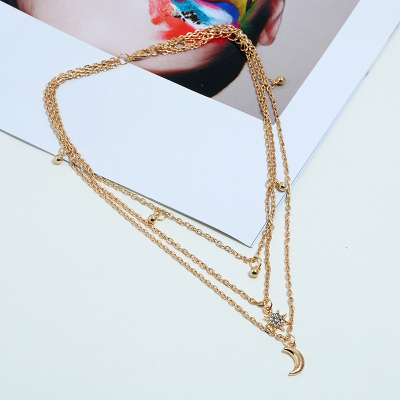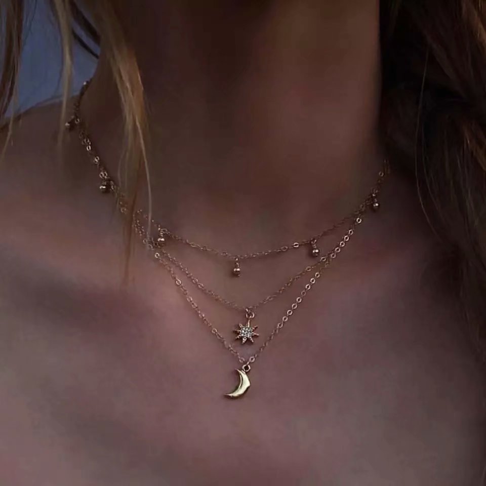 Multilayer Pentagram Love Water Drop Vintage Necklace