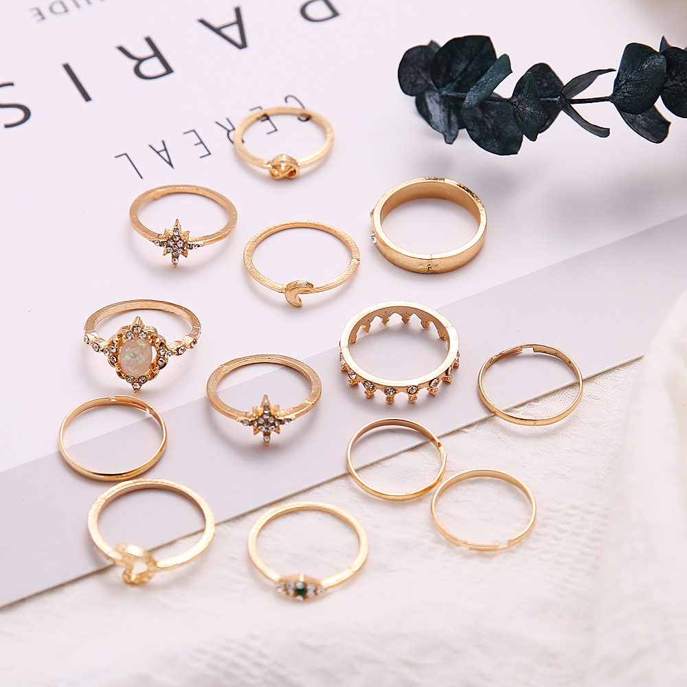 Alloy All-match Trendy Moon 13-piece Ring Set