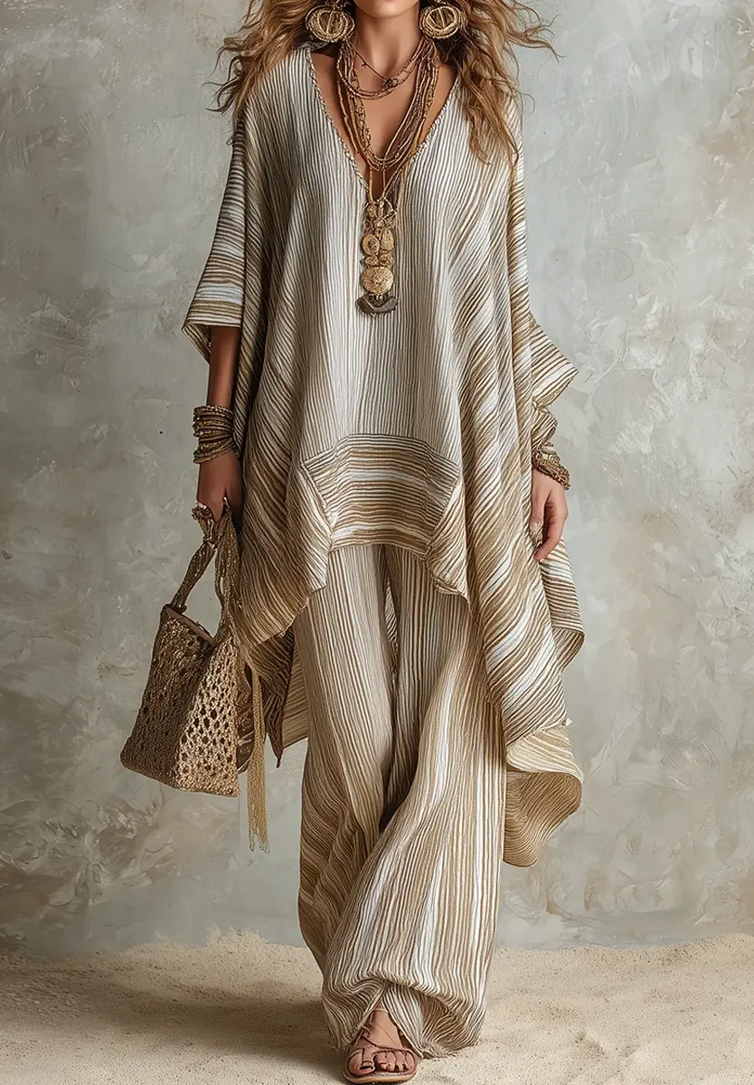 Women's Chic Striped Casual Stylish Cotton Linen Top & Pants Set