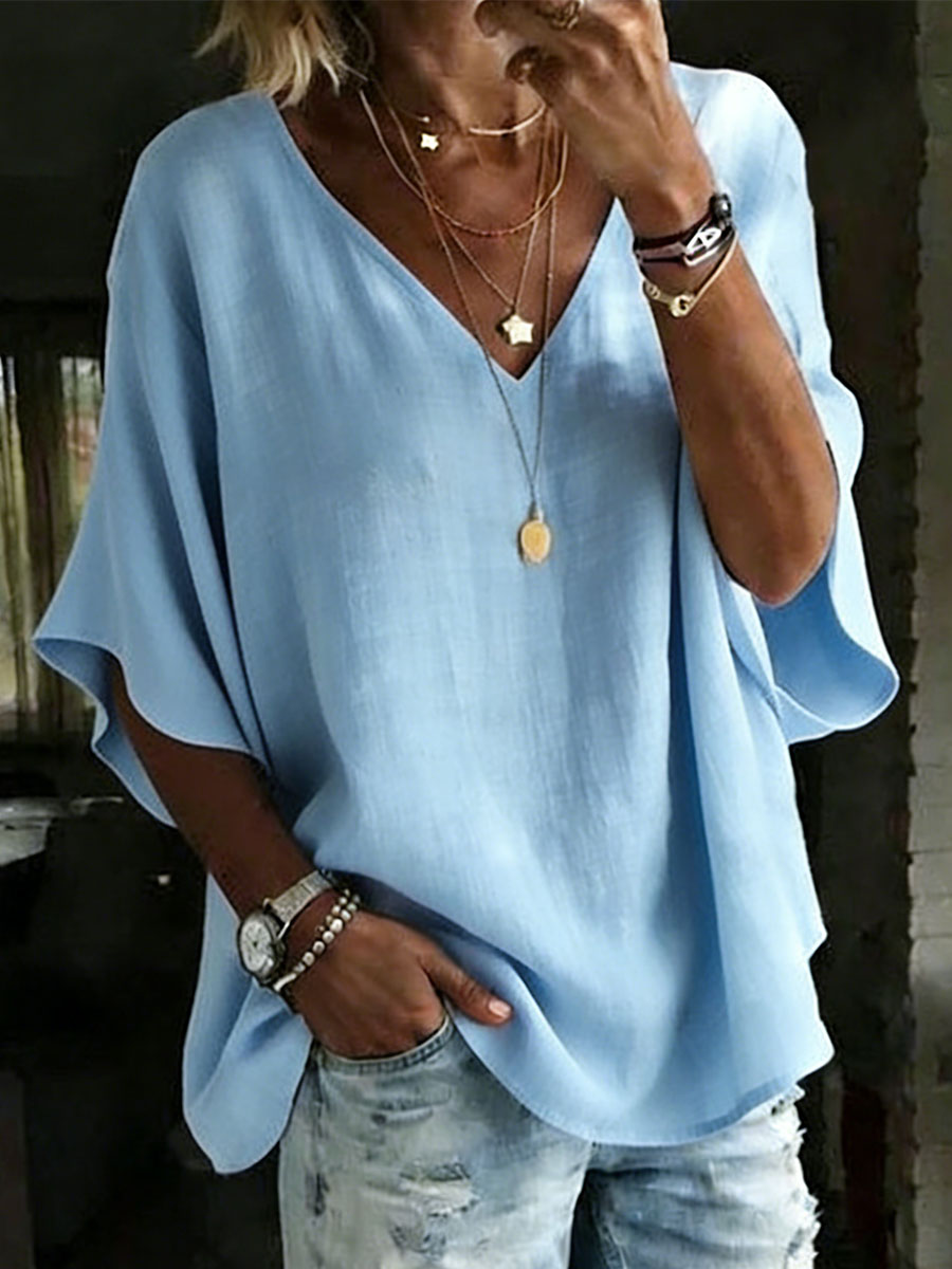 Women's 100% Cotton Classic Loose Fit V Neck Dolman Sleeve T-shirt