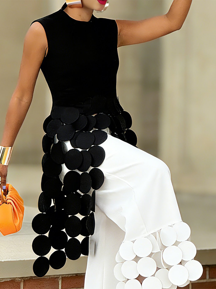 Stylish High Waisted Wide Leg Pants Circle Applique Party Trousers