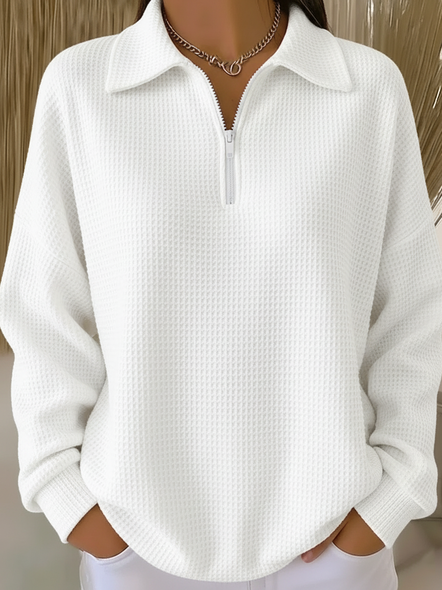 Women's Casual Polo Zipper Waffle Top Sweatshirt