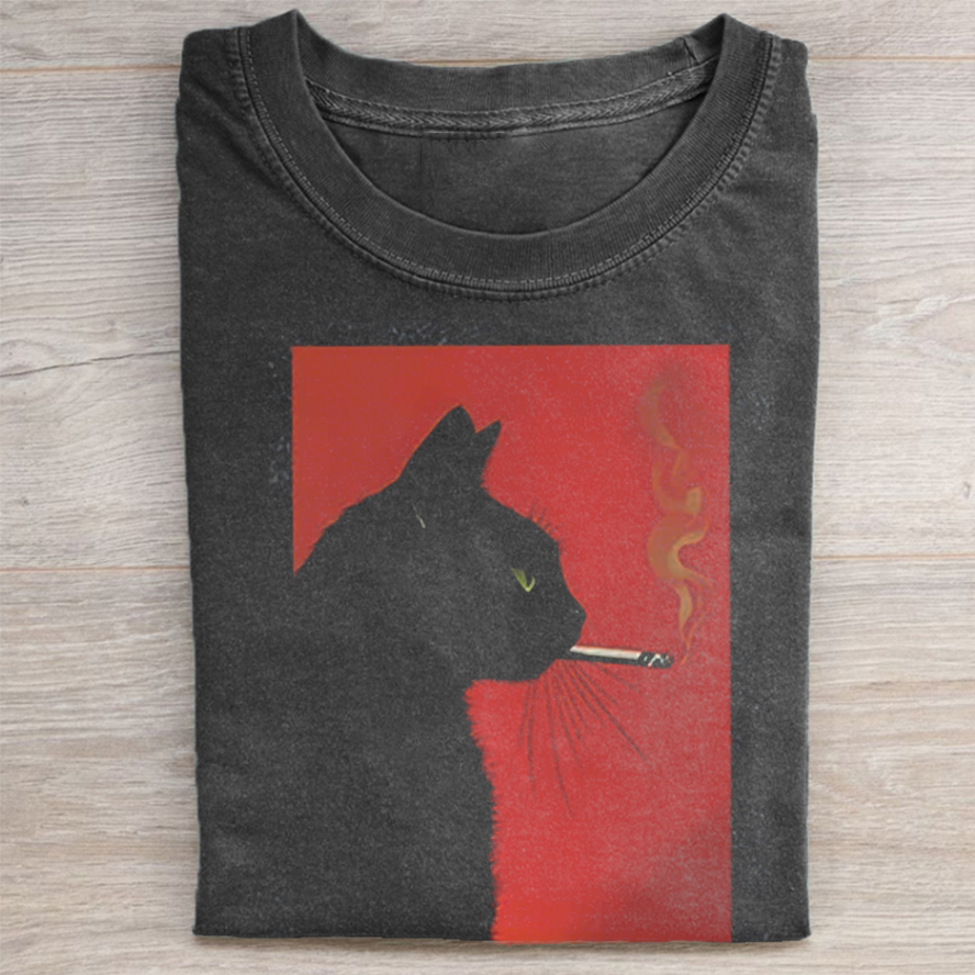 Black Cat Smoking T-shirt