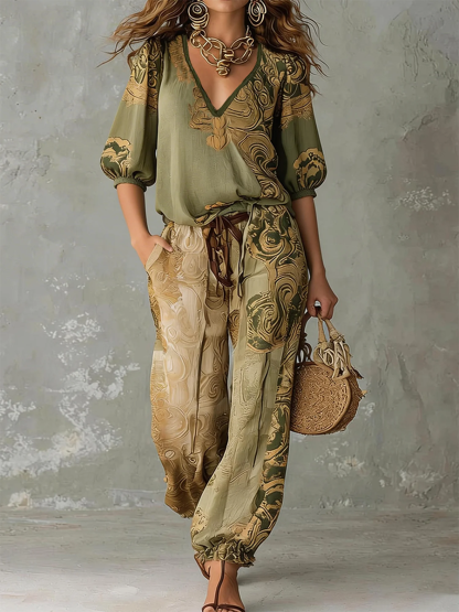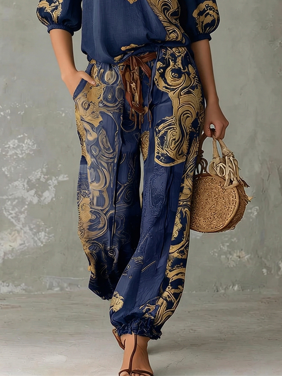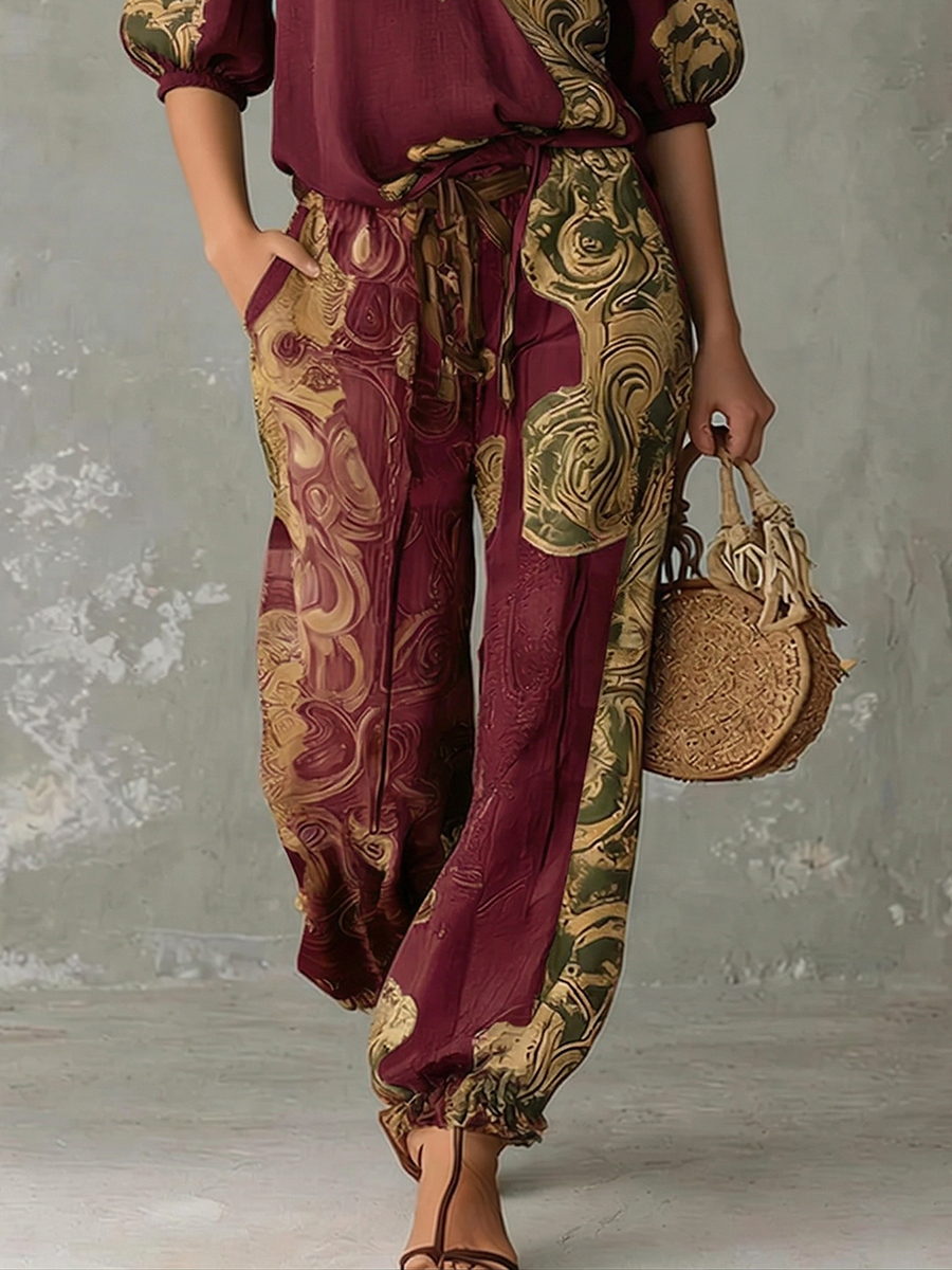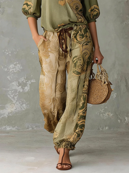 Bohemian Vintage-print Loose Lantern Pants