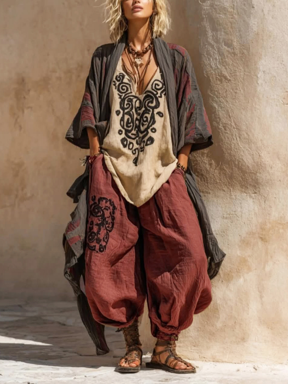 This bohemian retro linen-cotton three-piece set is designed for individualistic women who value comfort without sacrificing style, allowing you to enjoy a relaxed and carefree wearing experience.