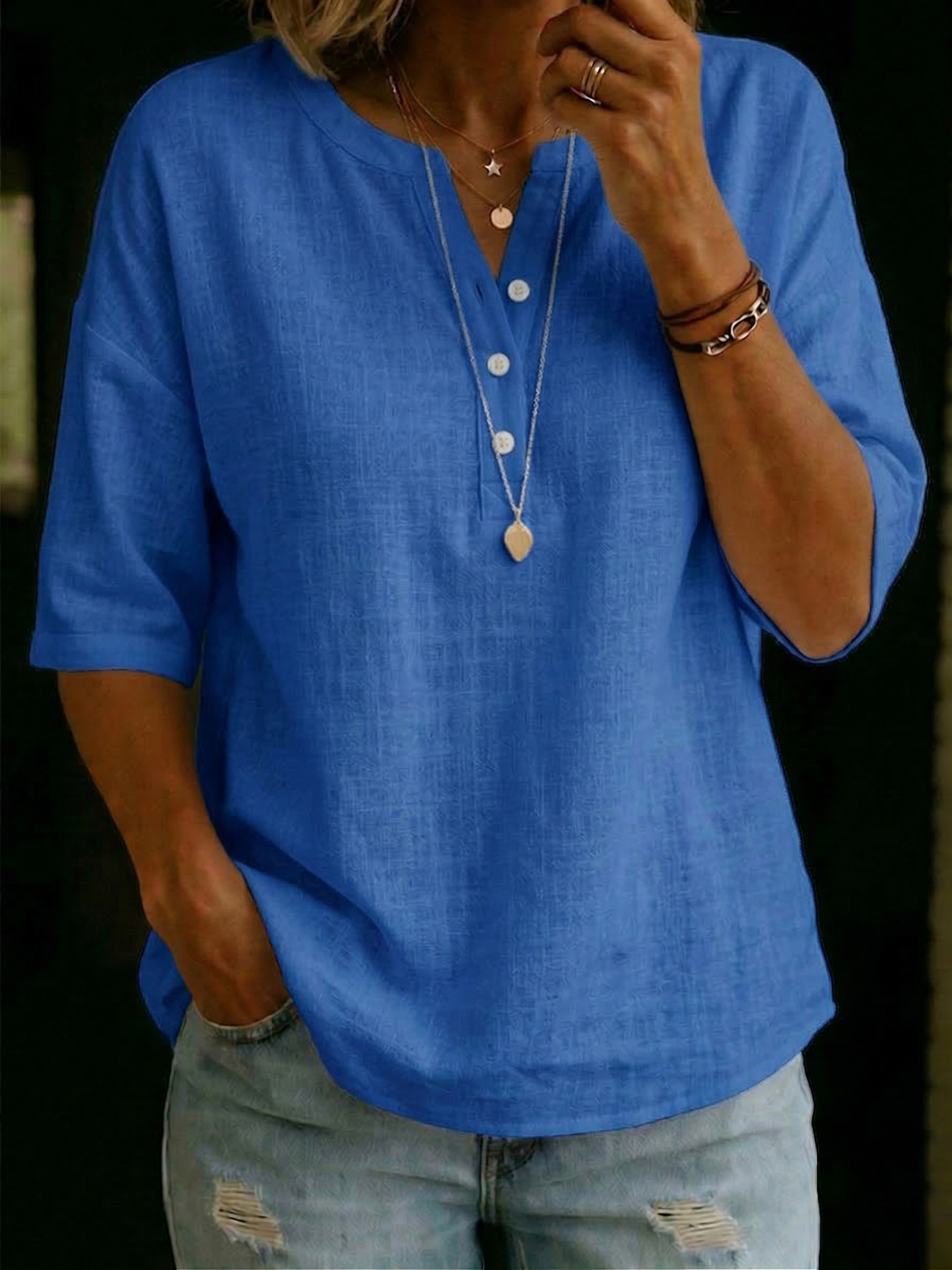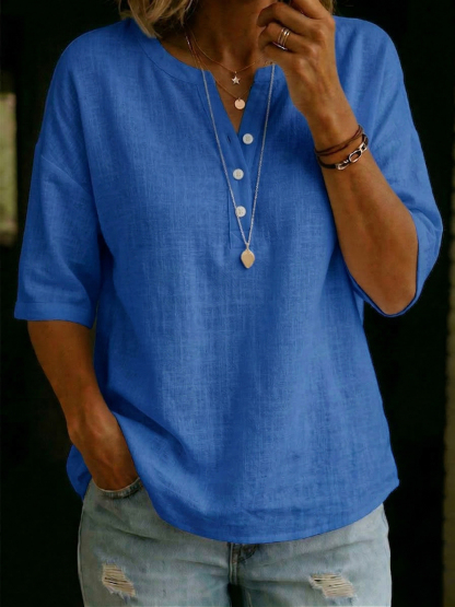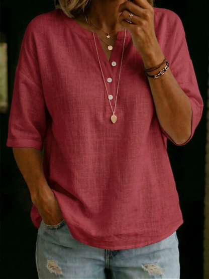Casual & Cozy Classic Cotton-linen Henley Shirt