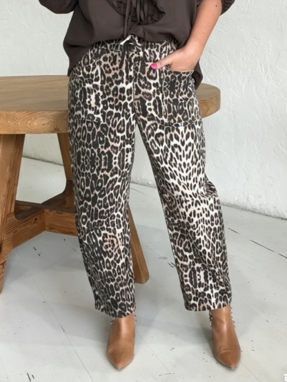 Casual Cozy Leopard Print Stretch Cotton Straight Leg Pants