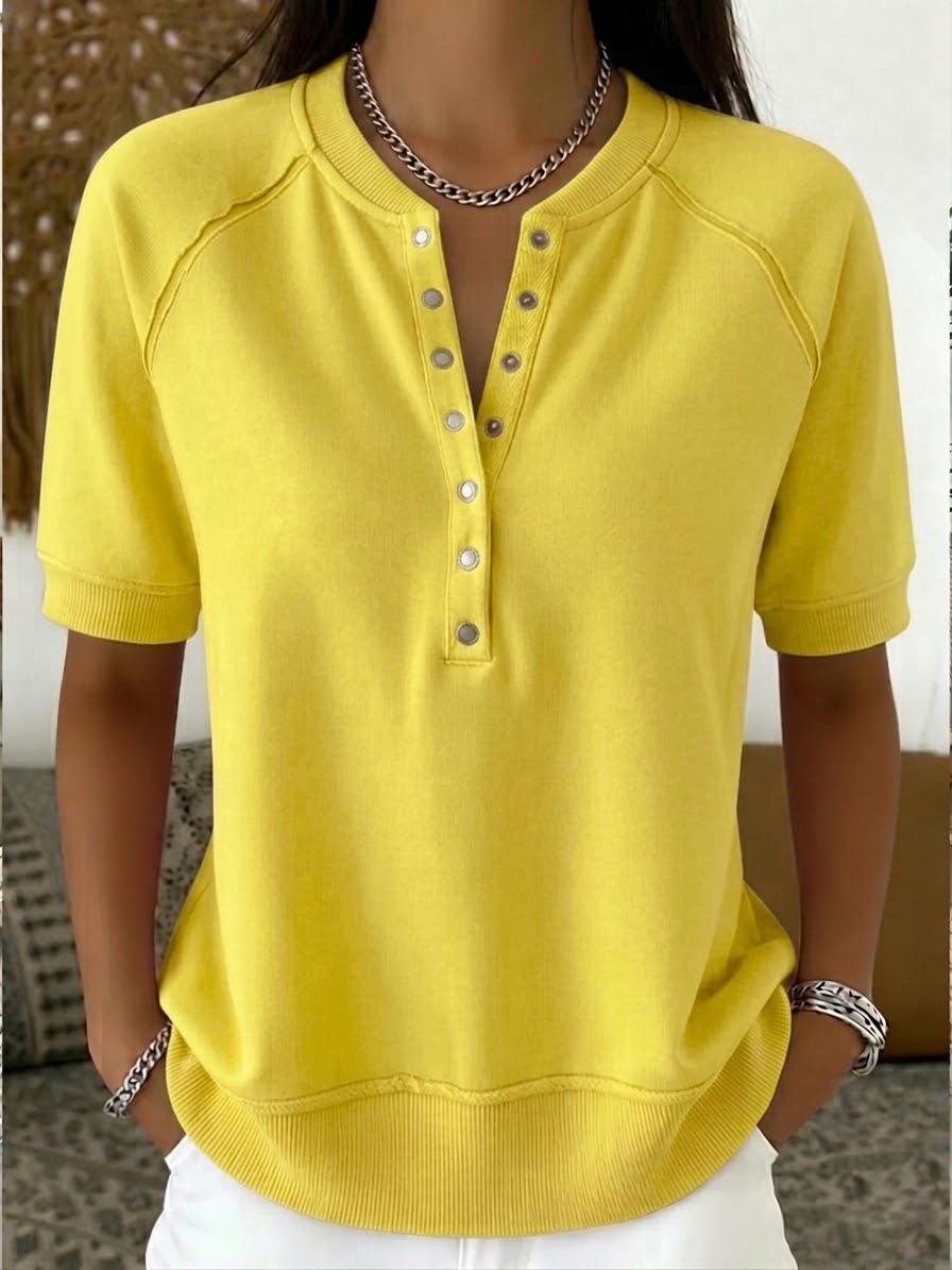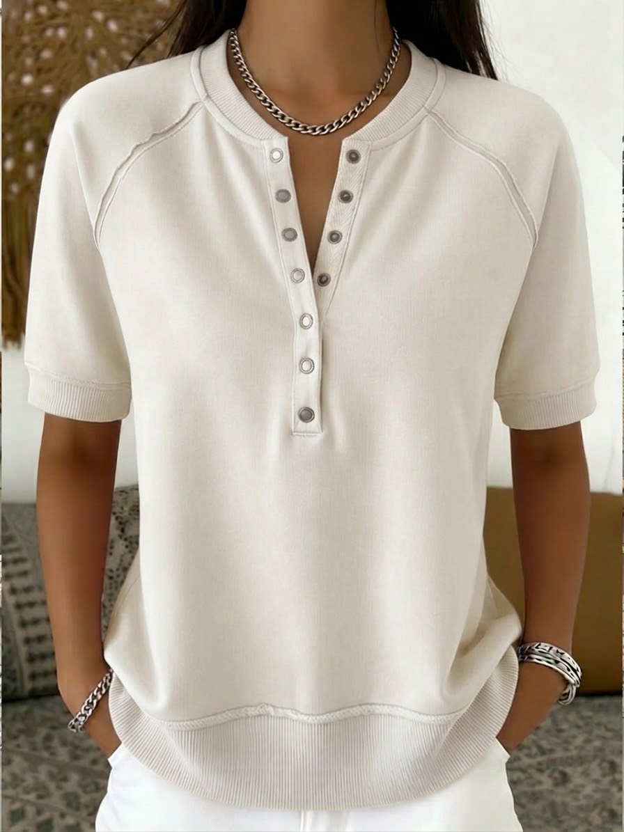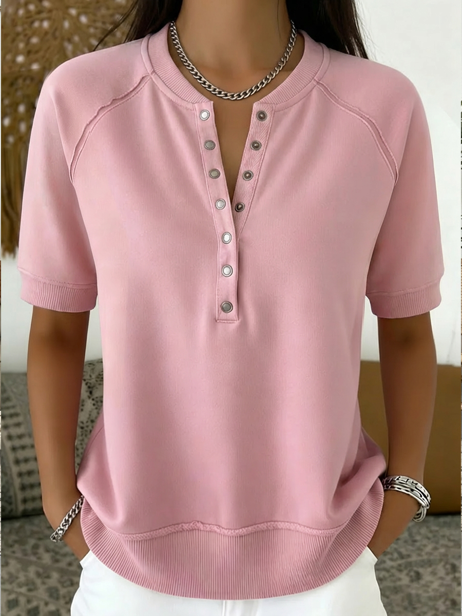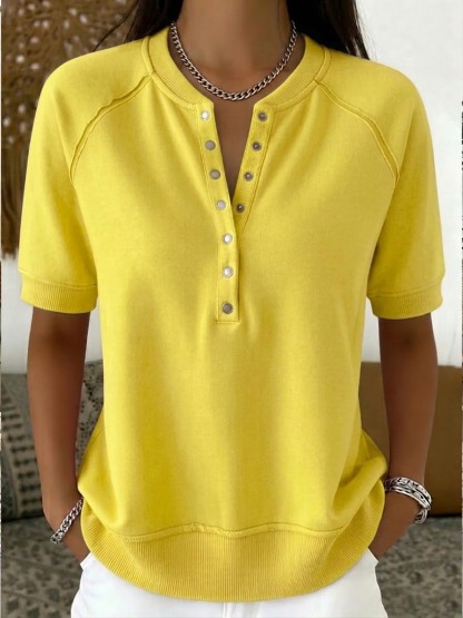 Casual Henley Collar Short-sleeve Sweatshirt