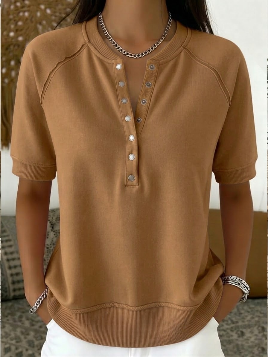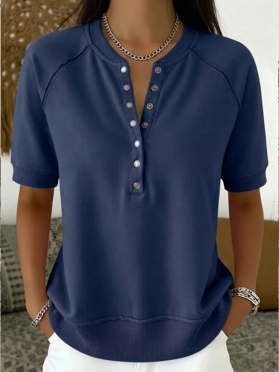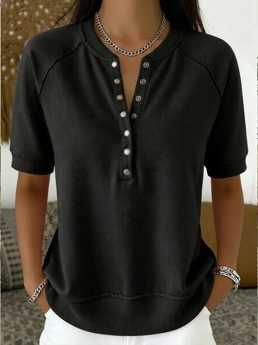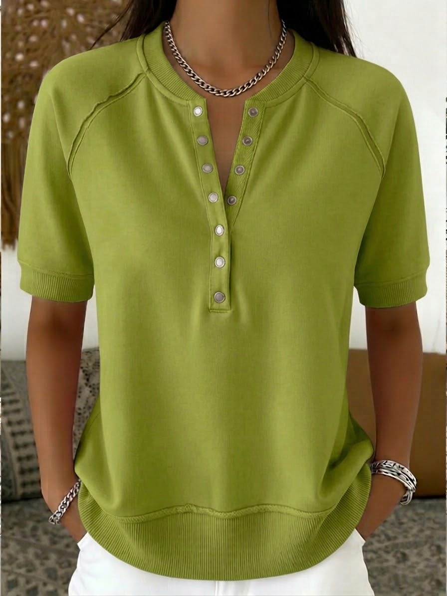 Casual Henley Collar Short-sleeve Sweatshirt