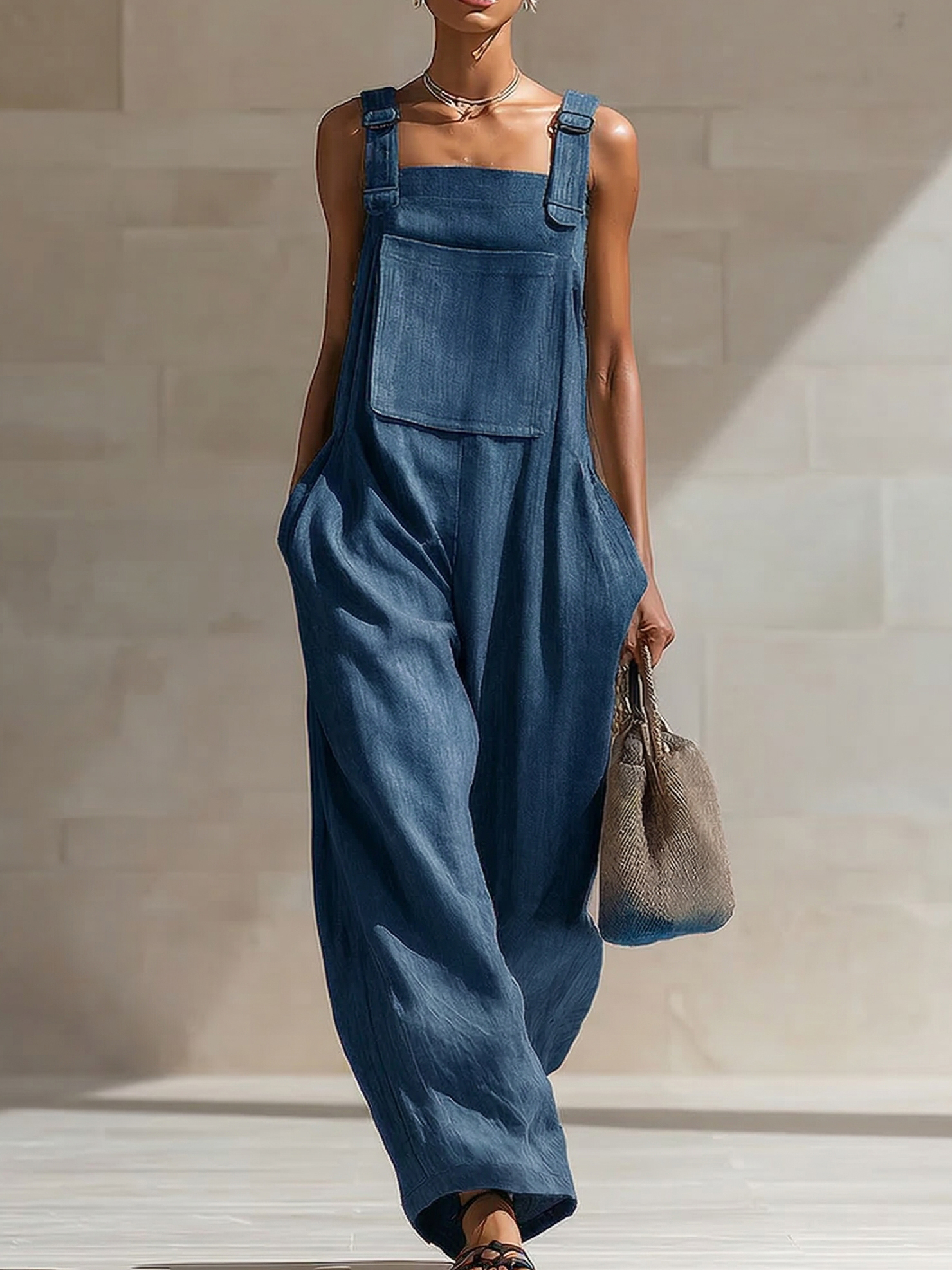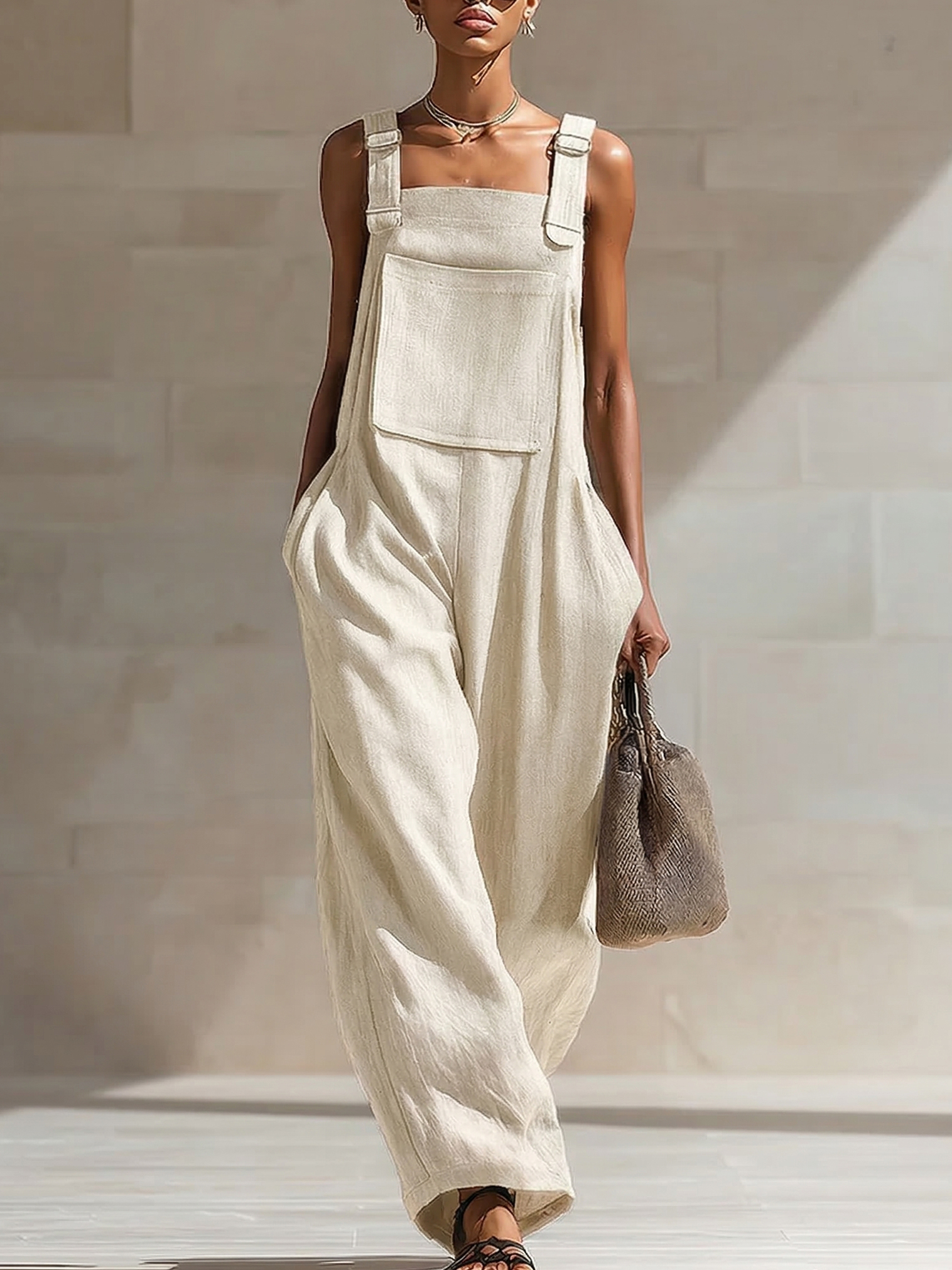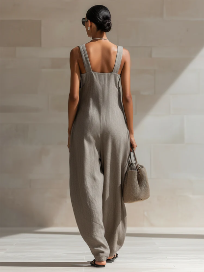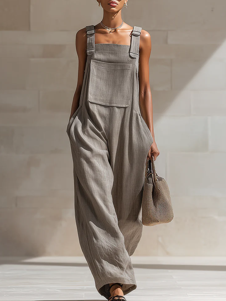 Casual Loose-fit Cotton Wide-leg Overalls