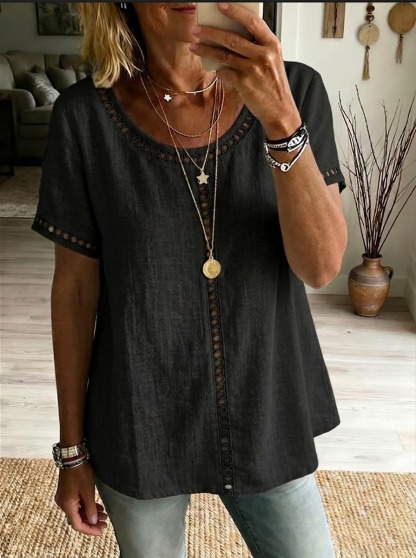 Cozy And Casual Patchwork Linen And Cotton Top With Openwork Weave