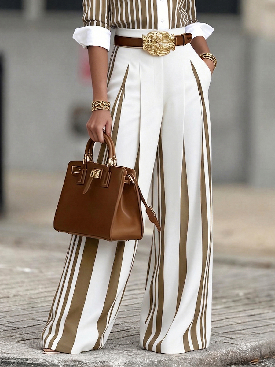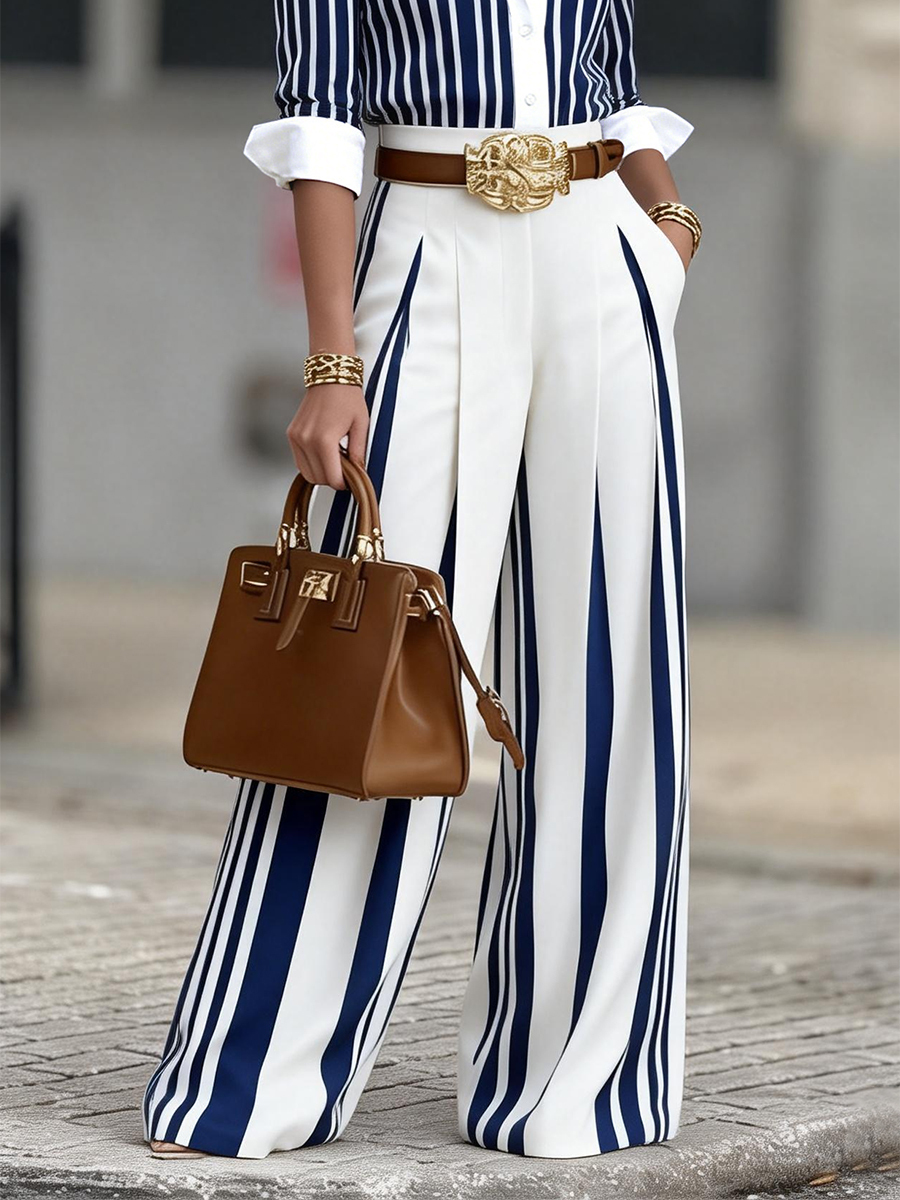 Step into effortless style with our Artistic Striped Wide-Leg Pants. These trousers feature a curated vertical stripe pattern that creates a stunning visual elongation for a taller, leaner silhouette. Crafted from a breathable natural blend, they offer a perfect balance of structured elegance and relaxed comfort. Whether you're heading to a gallery or a business meeting, these pants move with a graceful, fluid energy that defines modern sophistication.