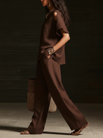 Elegant Off-the-shoulder Top And Wide-leg Pants Two-piece Set