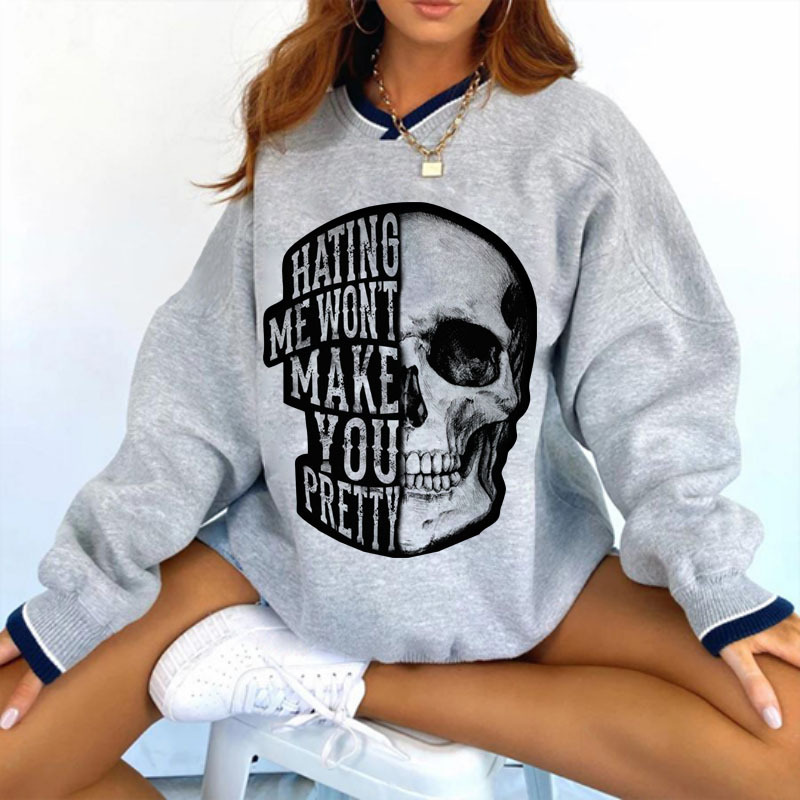 Hating Me Won't Make You Pretty Skull V-neck Sweatshirt