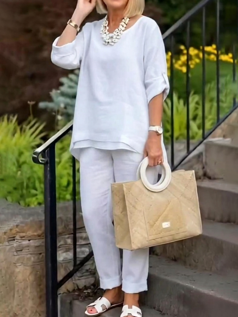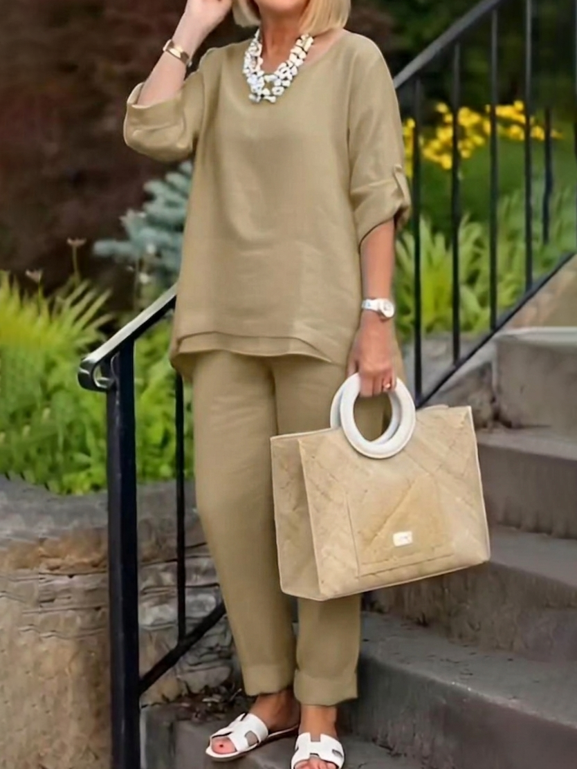 Minimalist & Cozy Layered Hem Cotton-linen Two-piece Set