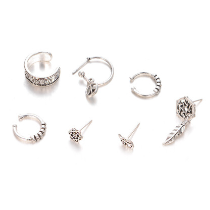 Ethnic dreamcatcher leaf design earrings 7-piece set