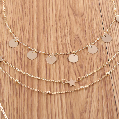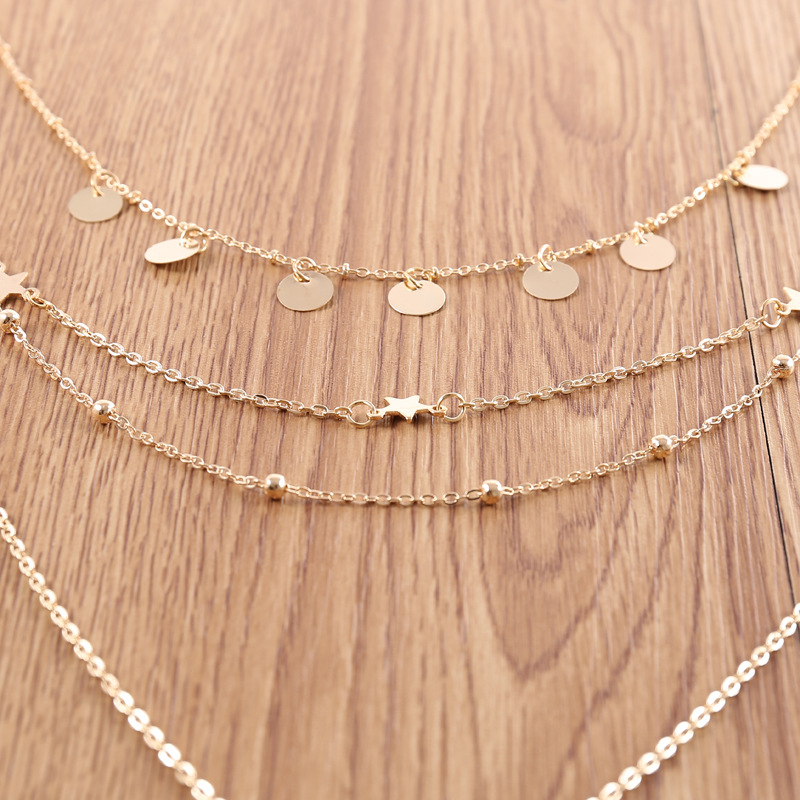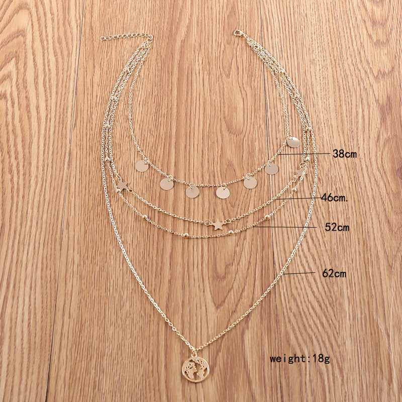 Fashion five-pointed star bead map multi-layer chic necklace