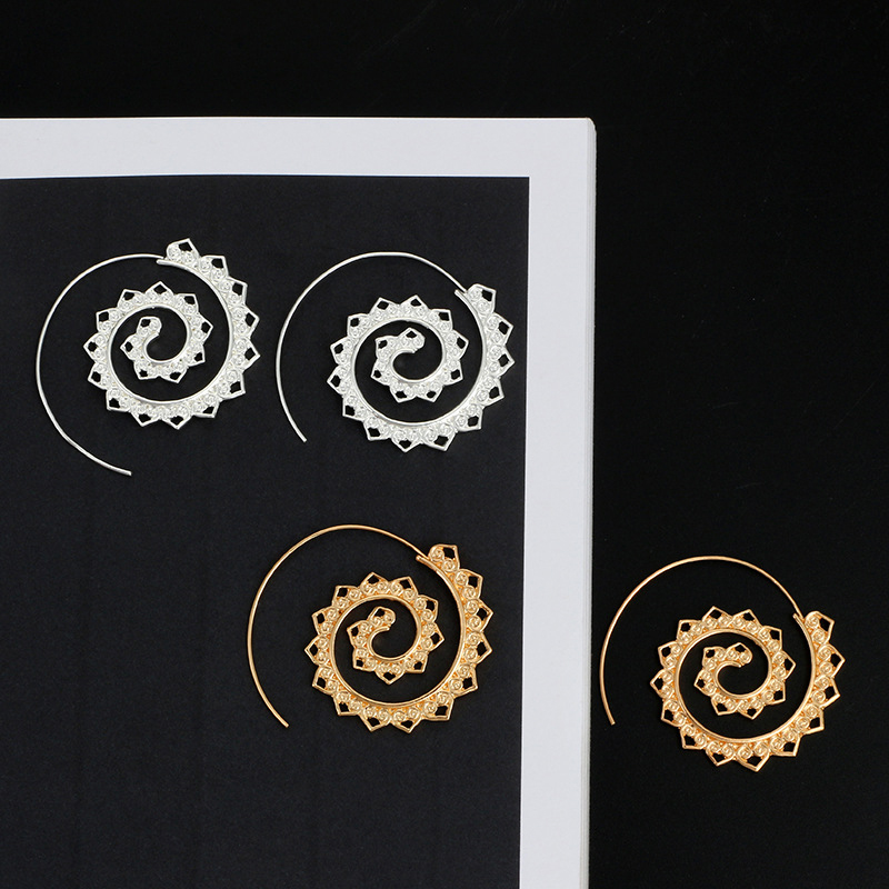 Round spiral exaggerated retro ladies earrings