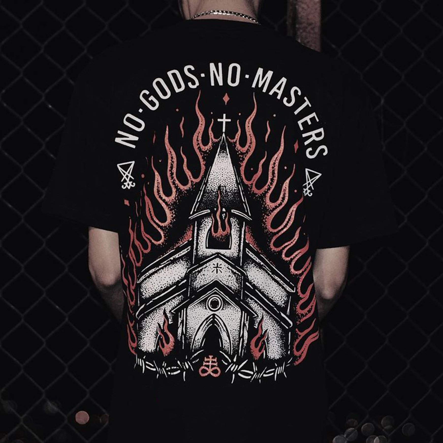 NO GODS NO MASTERS printed loose T-shirt