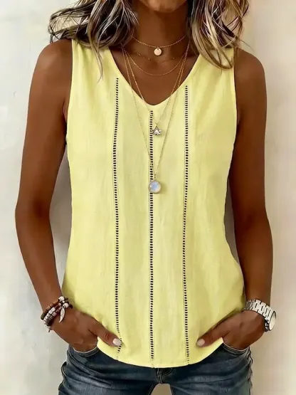 Simple Hollow-out Decorative Cotton And Linen Sleeveless Top