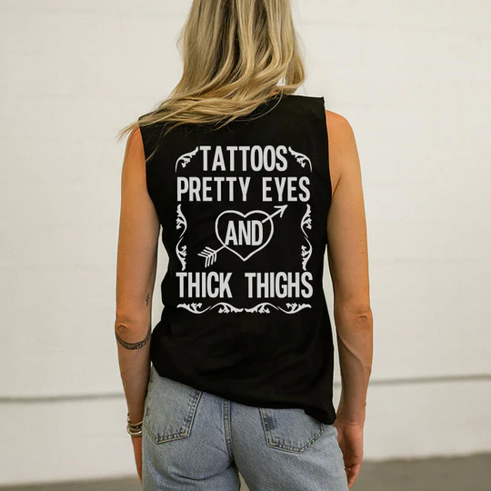 Tattooes Pretty Eyes and Thick Thighs Tank
