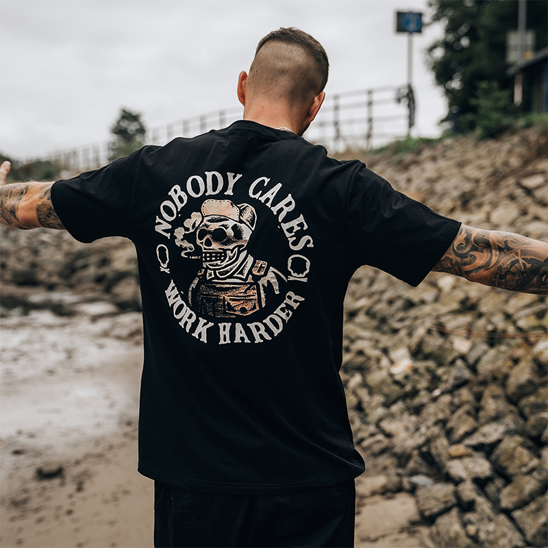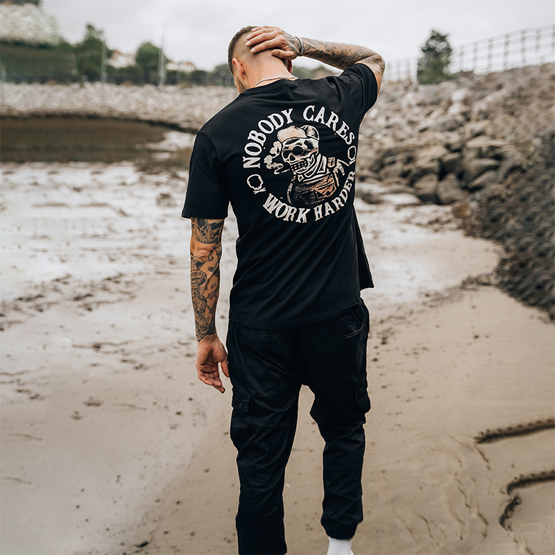 Nobody Cares Work Harder Skull Printed Men T-Shirt