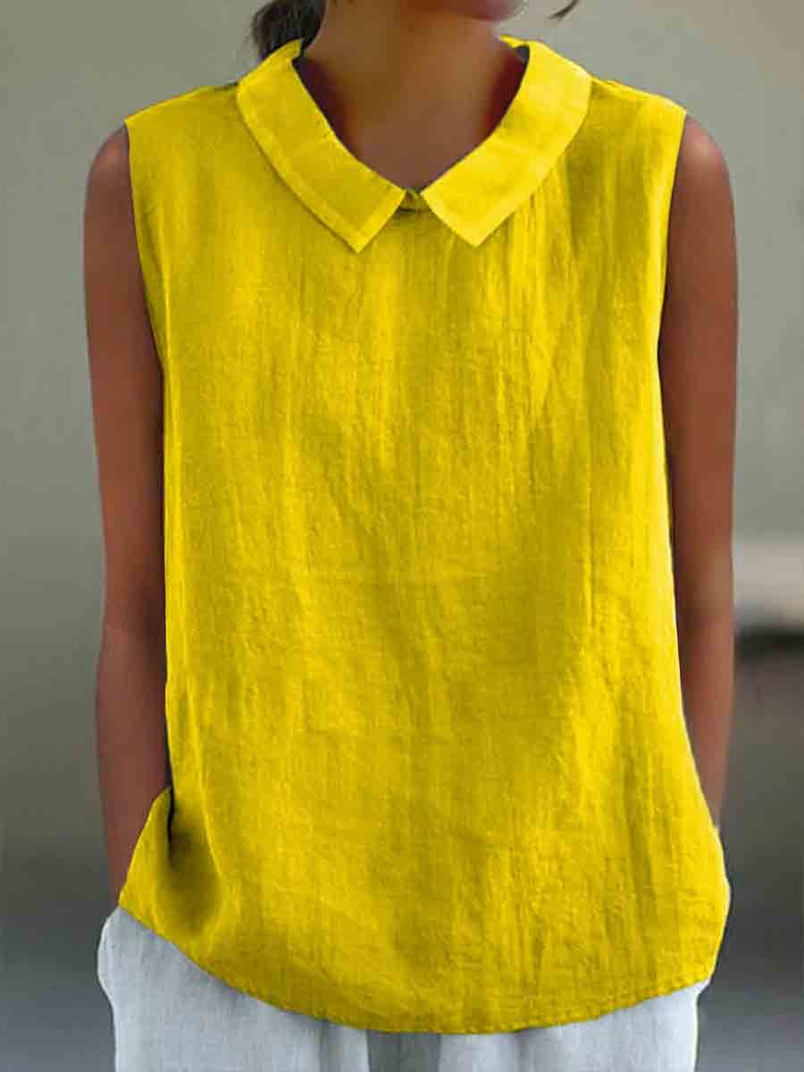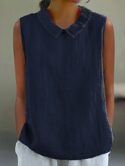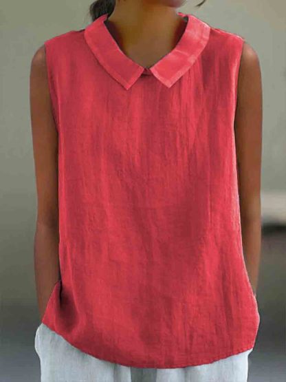 Women's Casual Cotton And Linen Peter Pan Tank Top