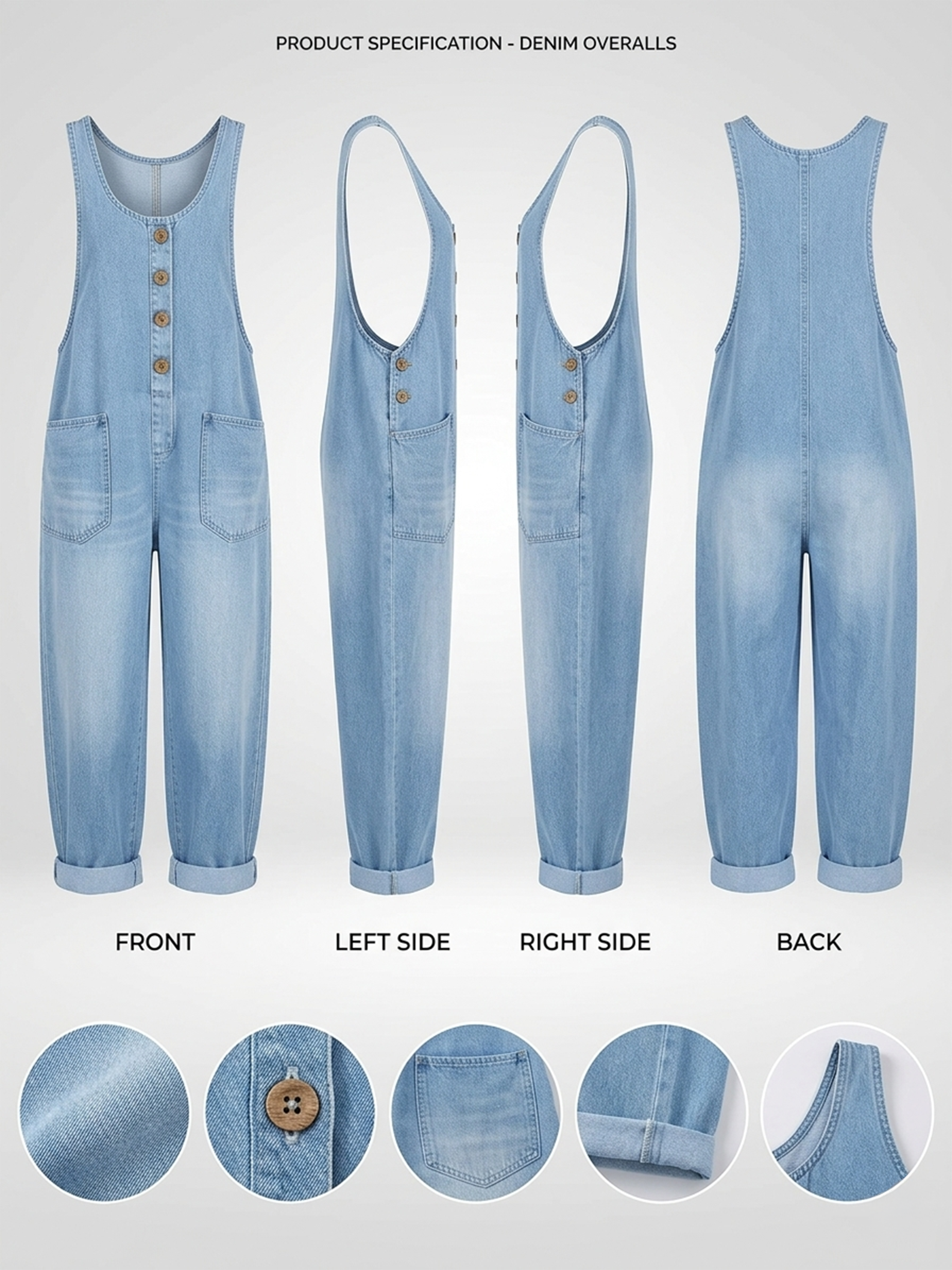 Women's Casual Cotton Vest And Denim Jumpsuit