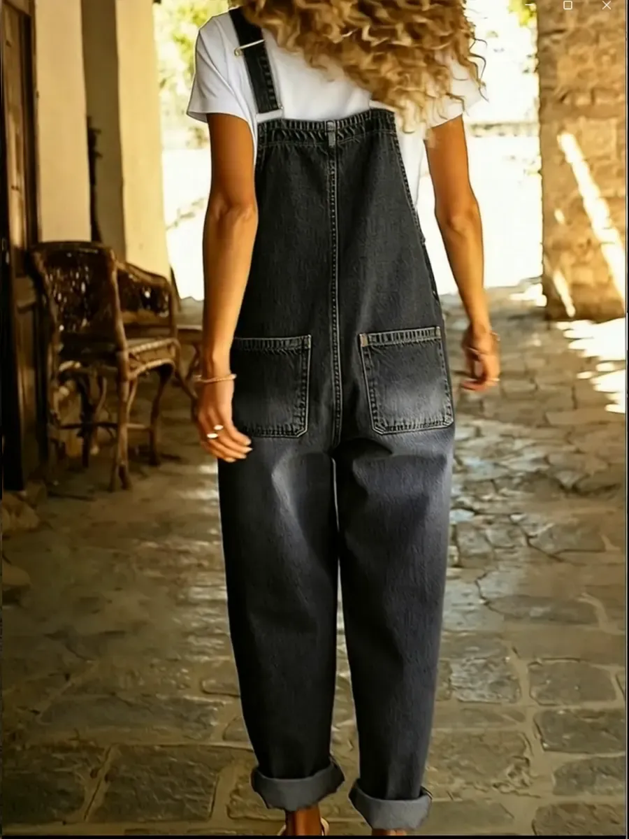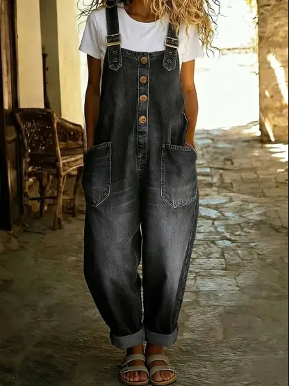 Women's Casual Denim Jumpsuit With Adjustable Buckle