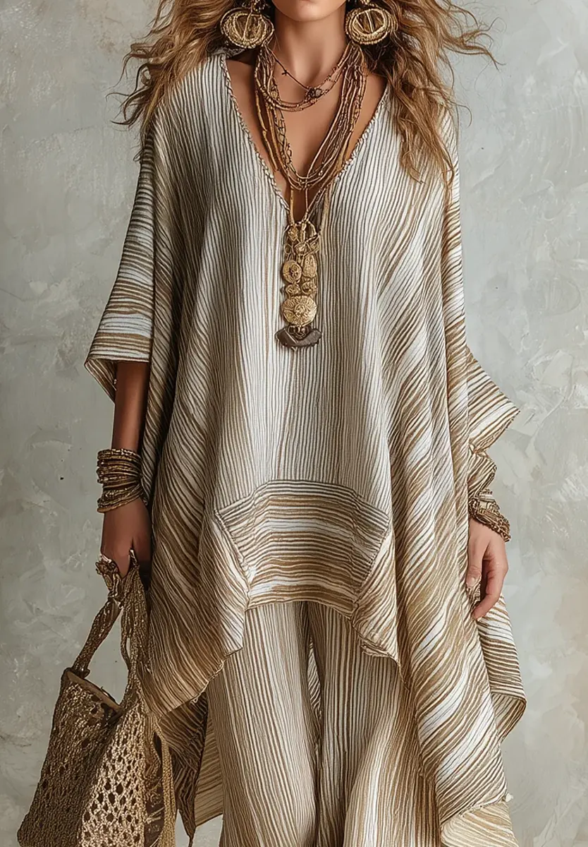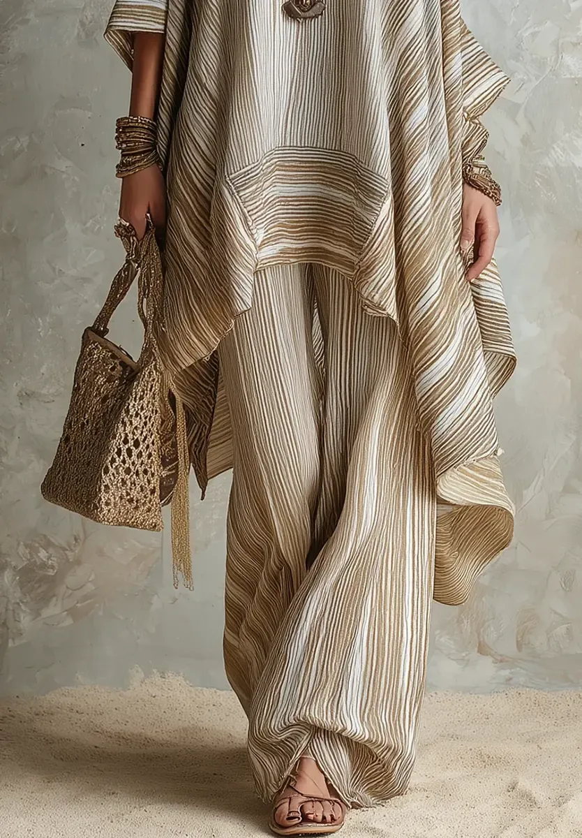 Women's Chic Striped Casual Stylish Cotton Linen Top & Pants Set