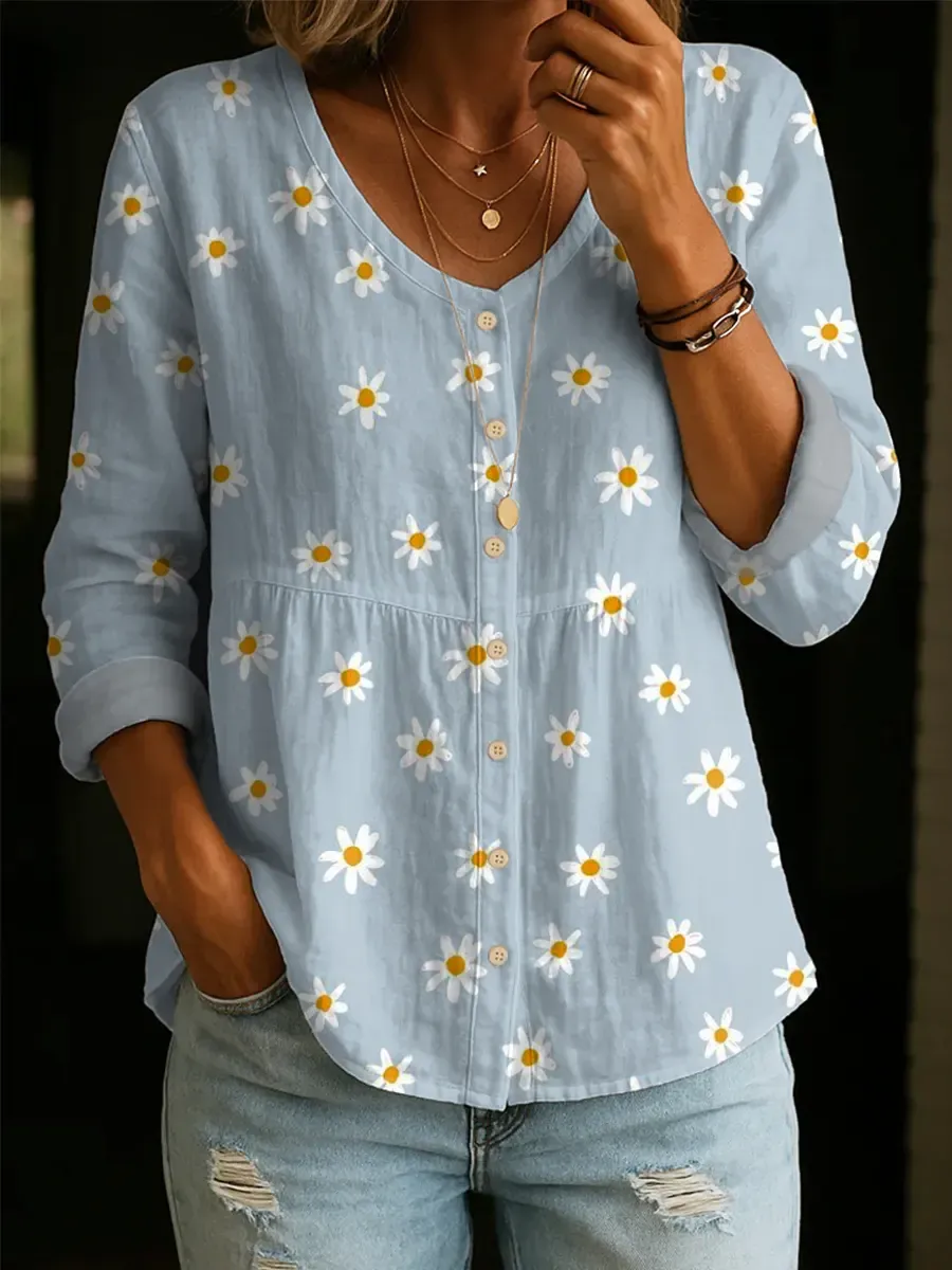 Women's Floral Pattern Art Print Casual Cotton Shirt