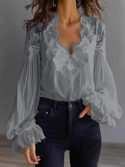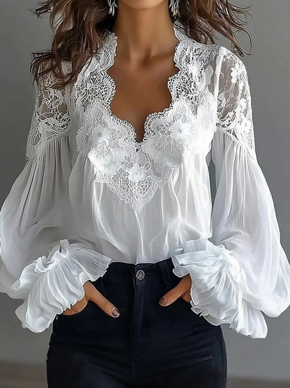 Women's Lace Patchwork Puff Sleeve Shirt