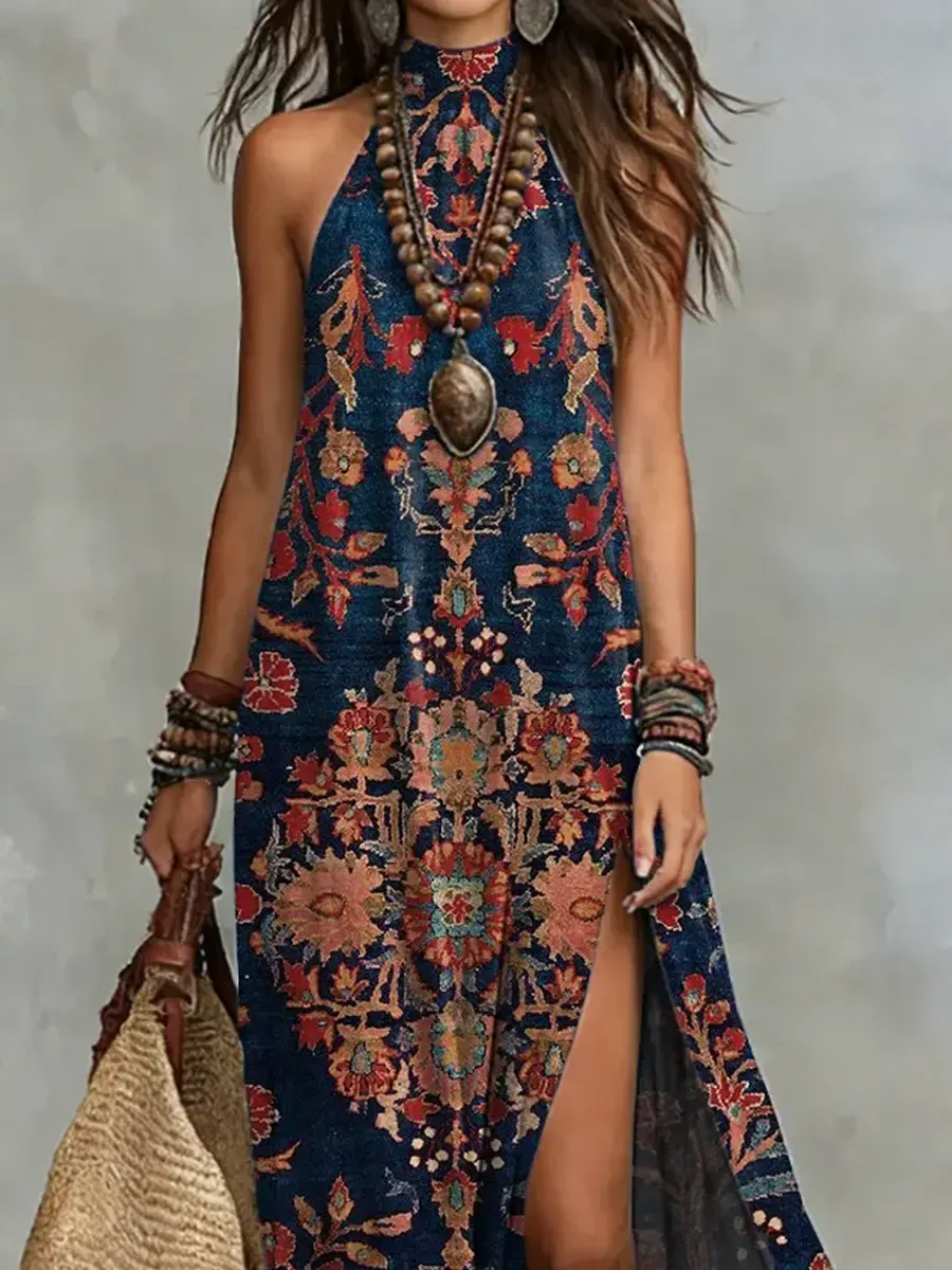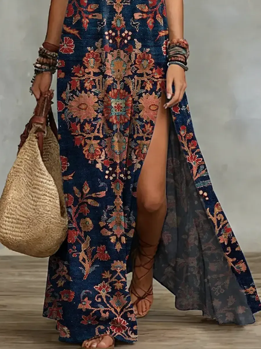 Women's Retro Ethnic Floral Pattern Art Print Casual Stylish Cotton Dress