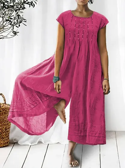 Women's Solid Color Art Casual Short Sleeve Cotton Linen Jumpsuit