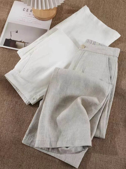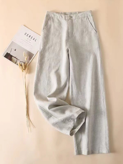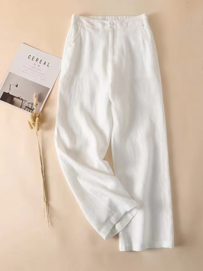 Women's Solid Color Half Elastic Waist Casual Cotton and Linen Wide Leg Pants