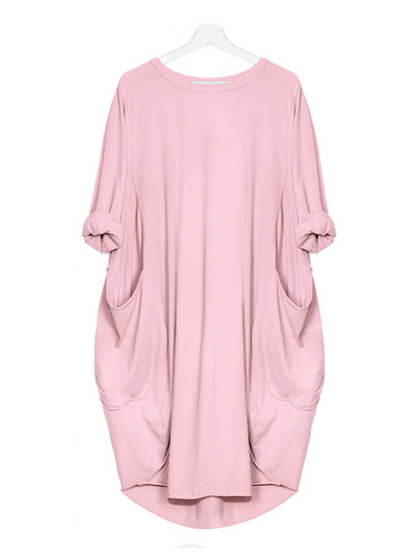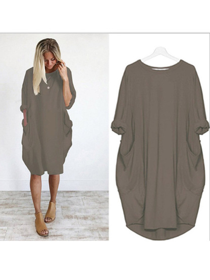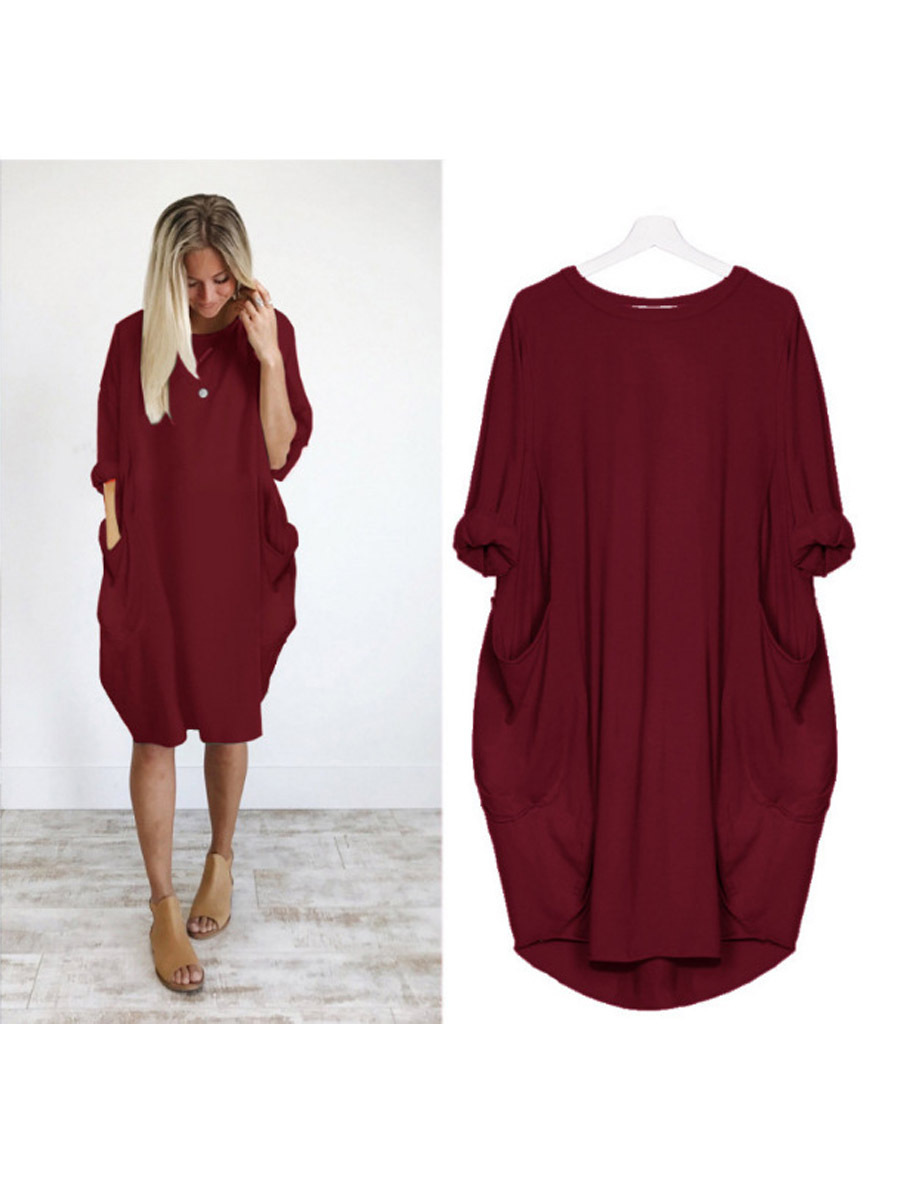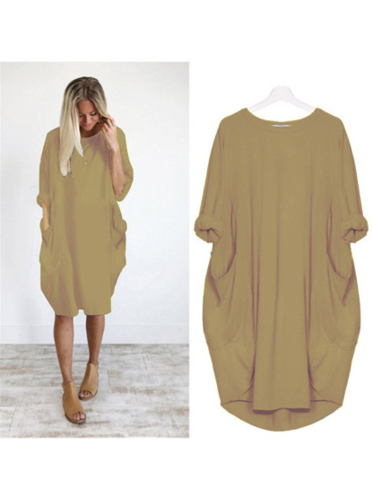 Women's Solid Color Loose Elegant Casual Long-sleeved Pocket Dress