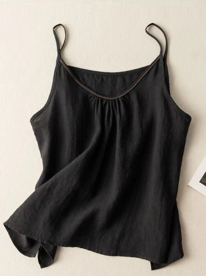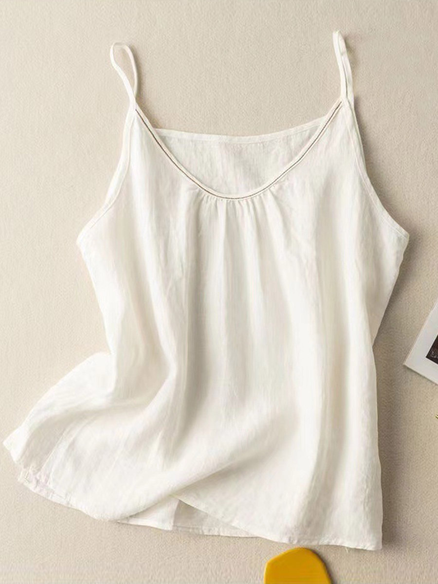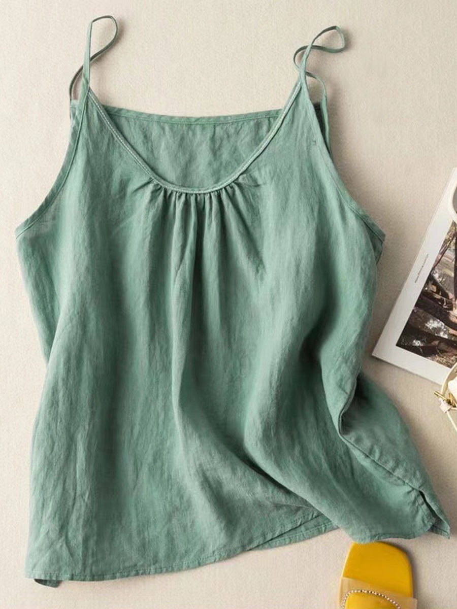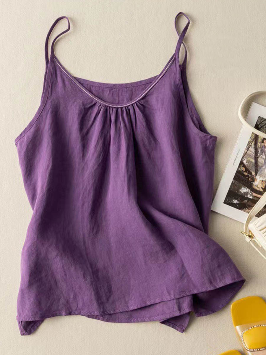 Women's Solid Color V-Neck Cotton And Linen Suspenders Tops