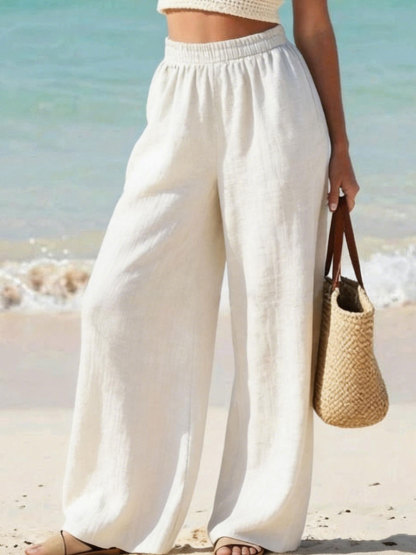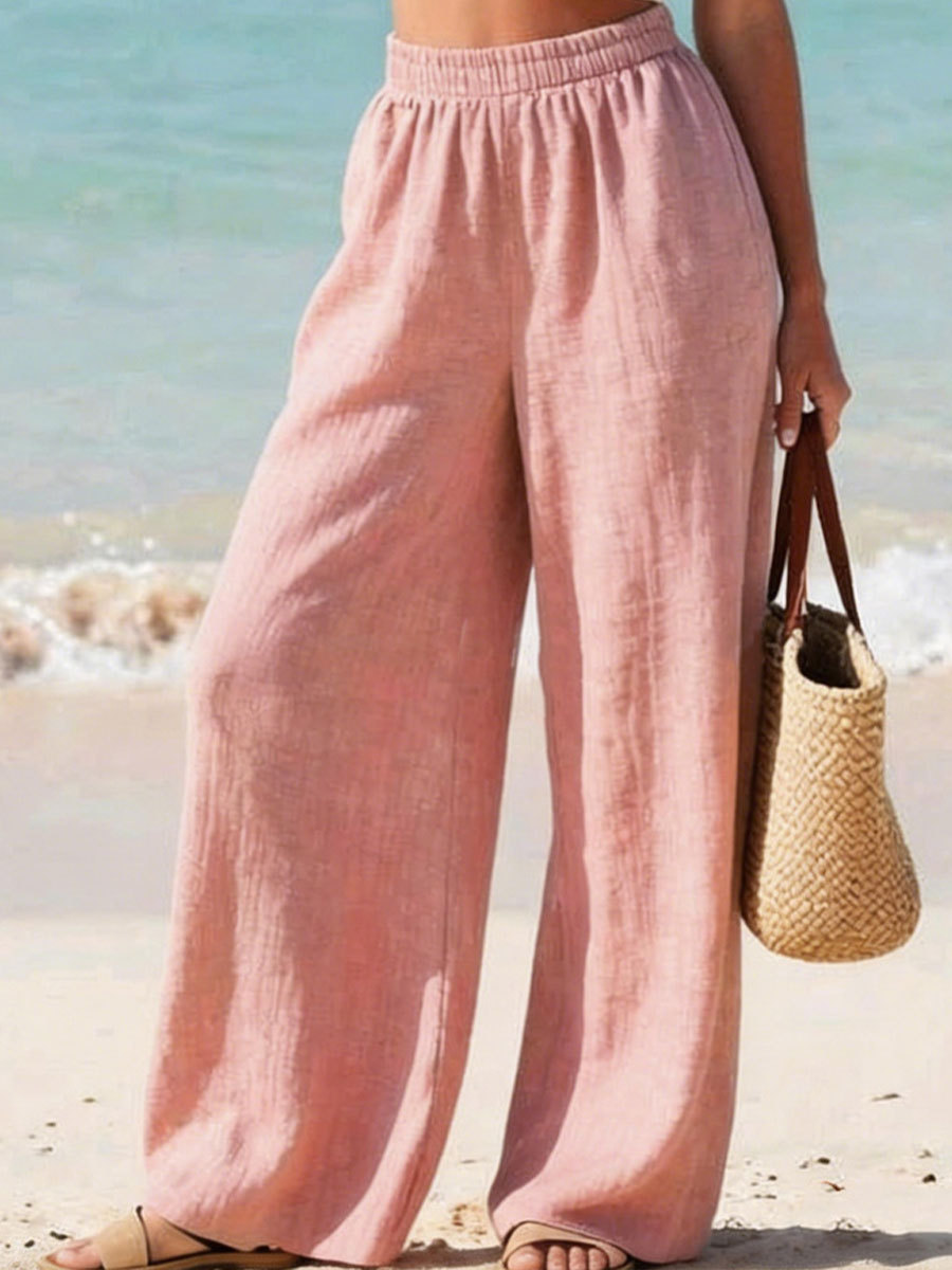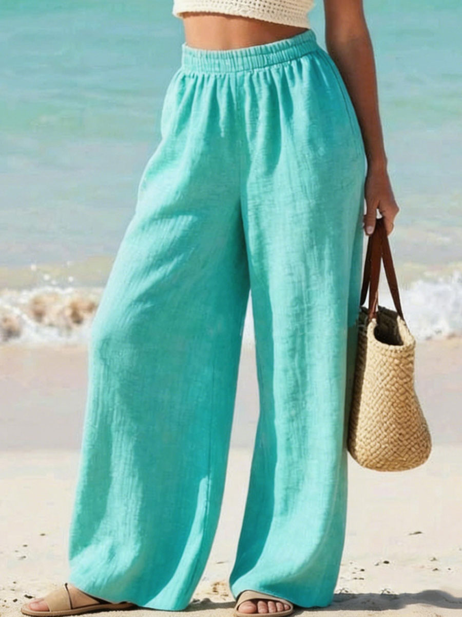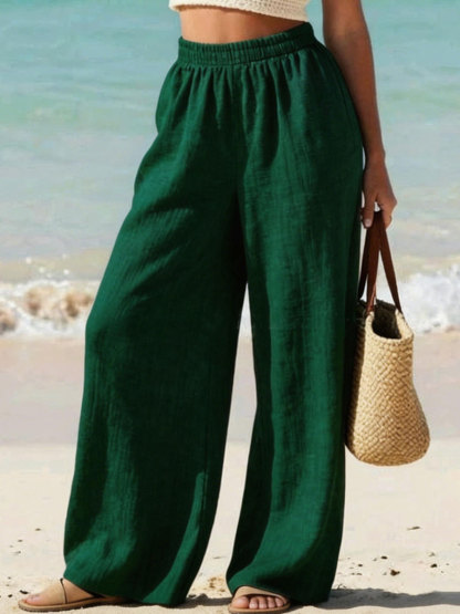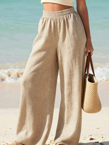 Women's Solid-color Wide-leg Casual Cotton-linen Trousers