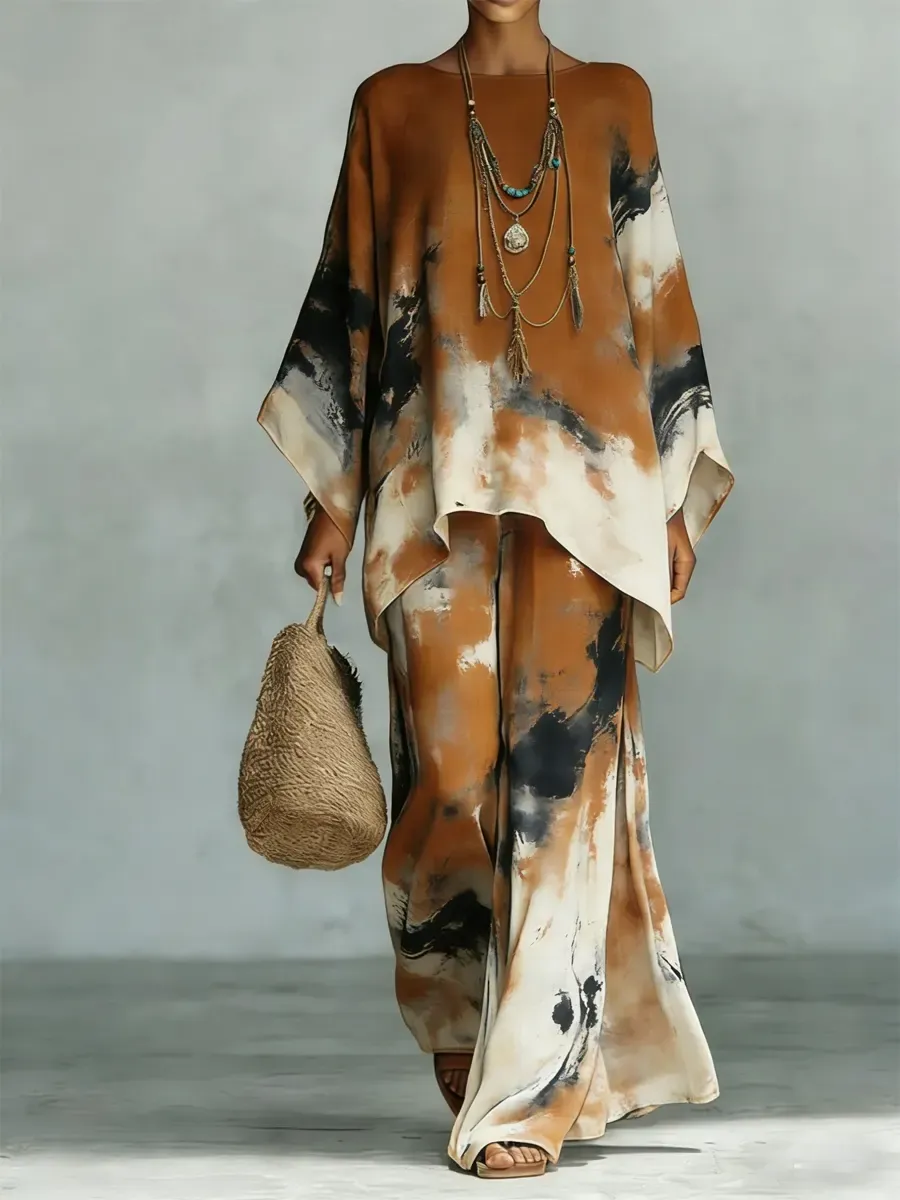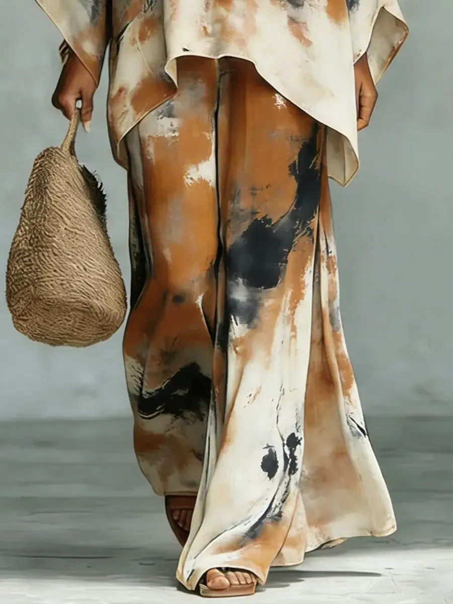 Women's Vintage Art Comfortable Loose Cotton Linen Wide-leg Pants Two-piece Set