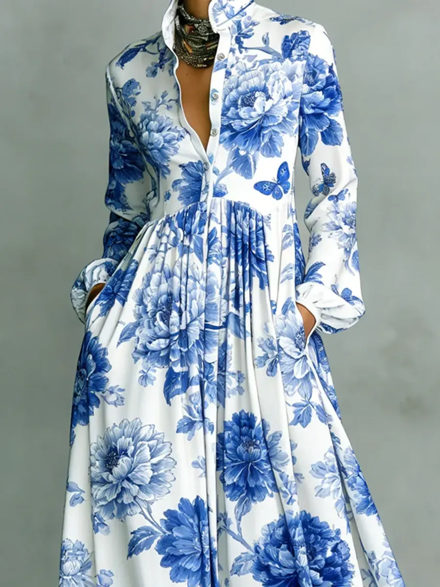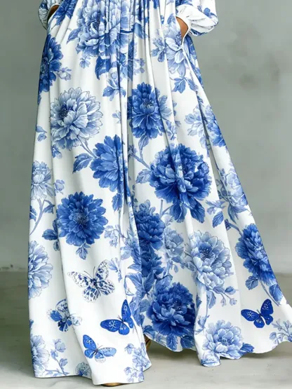 Women's Vintage Floral Art Elegant Romantic Casual Vacation Maxi Dress