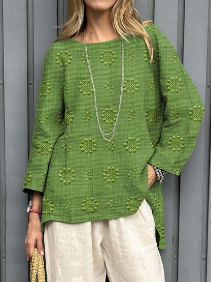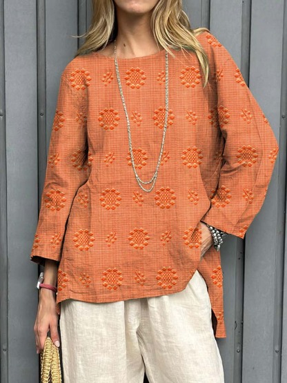 Women's Vintage Floral Pattern Art Print Casual Cotton Linen Shirt