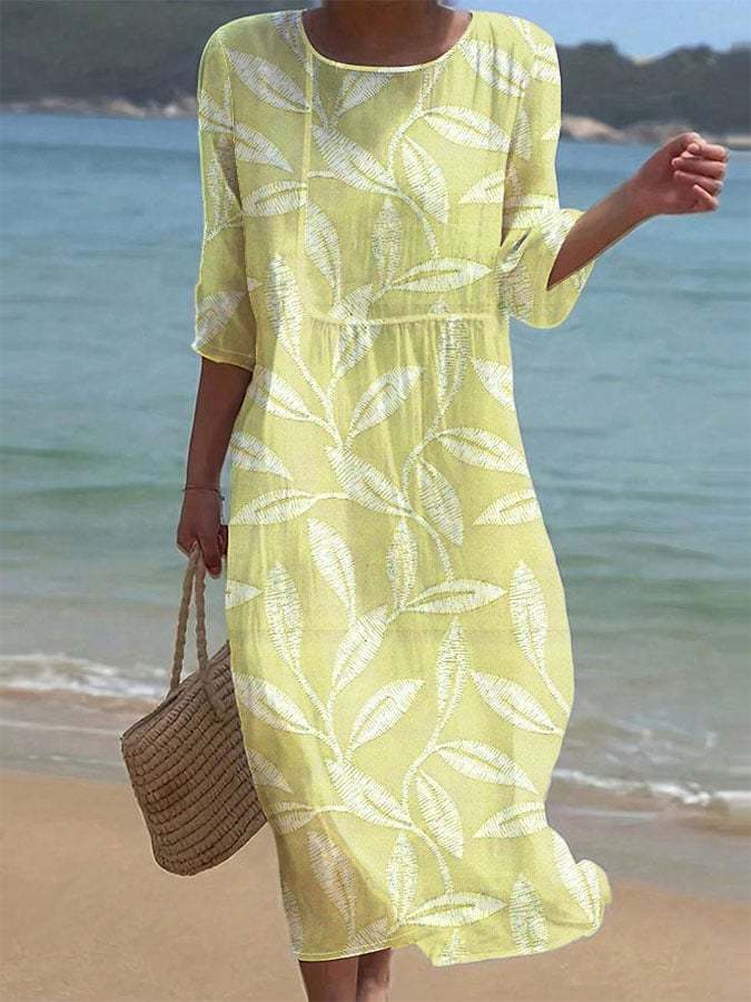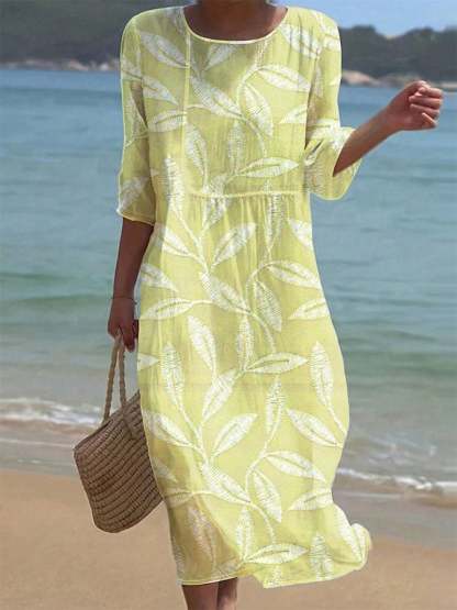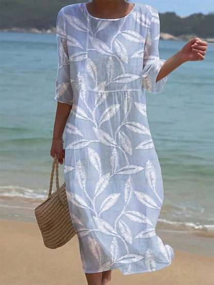 Women's Vintage Flower Art Print Pocket Cotton Dress